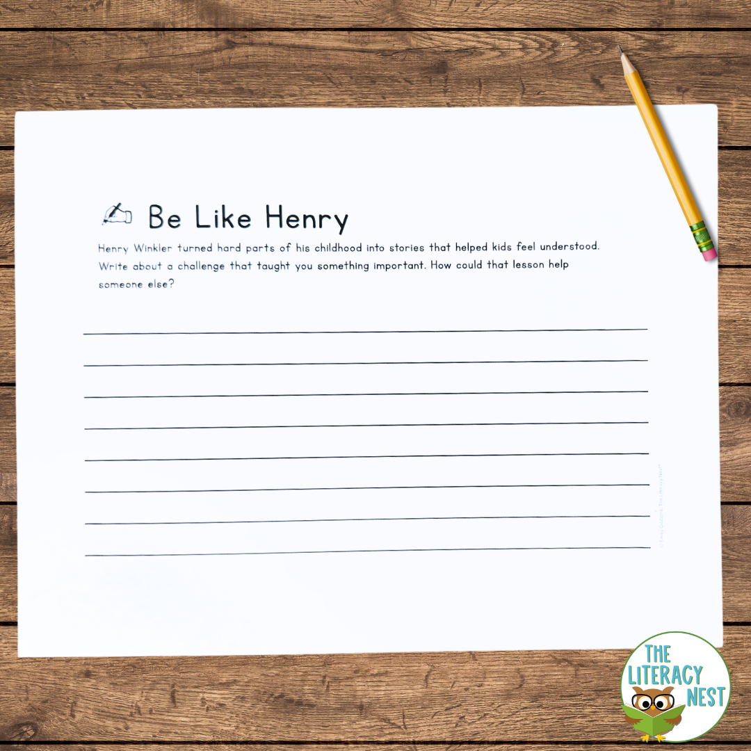 - 📝 A lined writing prompt worksheet: “Be Like Henry”