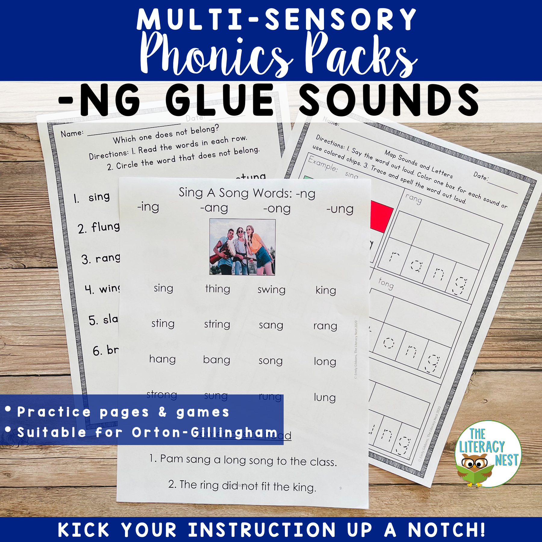 This -ng glued sounds pack has everything you need to teach the -ng glued sounds for -ing, -ang, -ong, and -ung. It is suitable for Orton-Gillingham instruction and other reading interventions to achieve phonemic awareness.