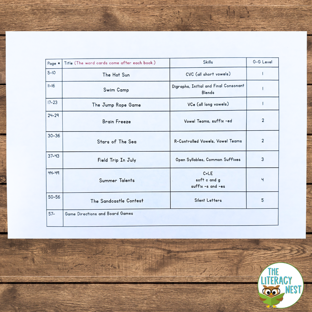 Each book practices a culmination of skills, which will increase in complexity with each book. If you work with students in many grades at various stages of reading development, this resource will work well in summer.