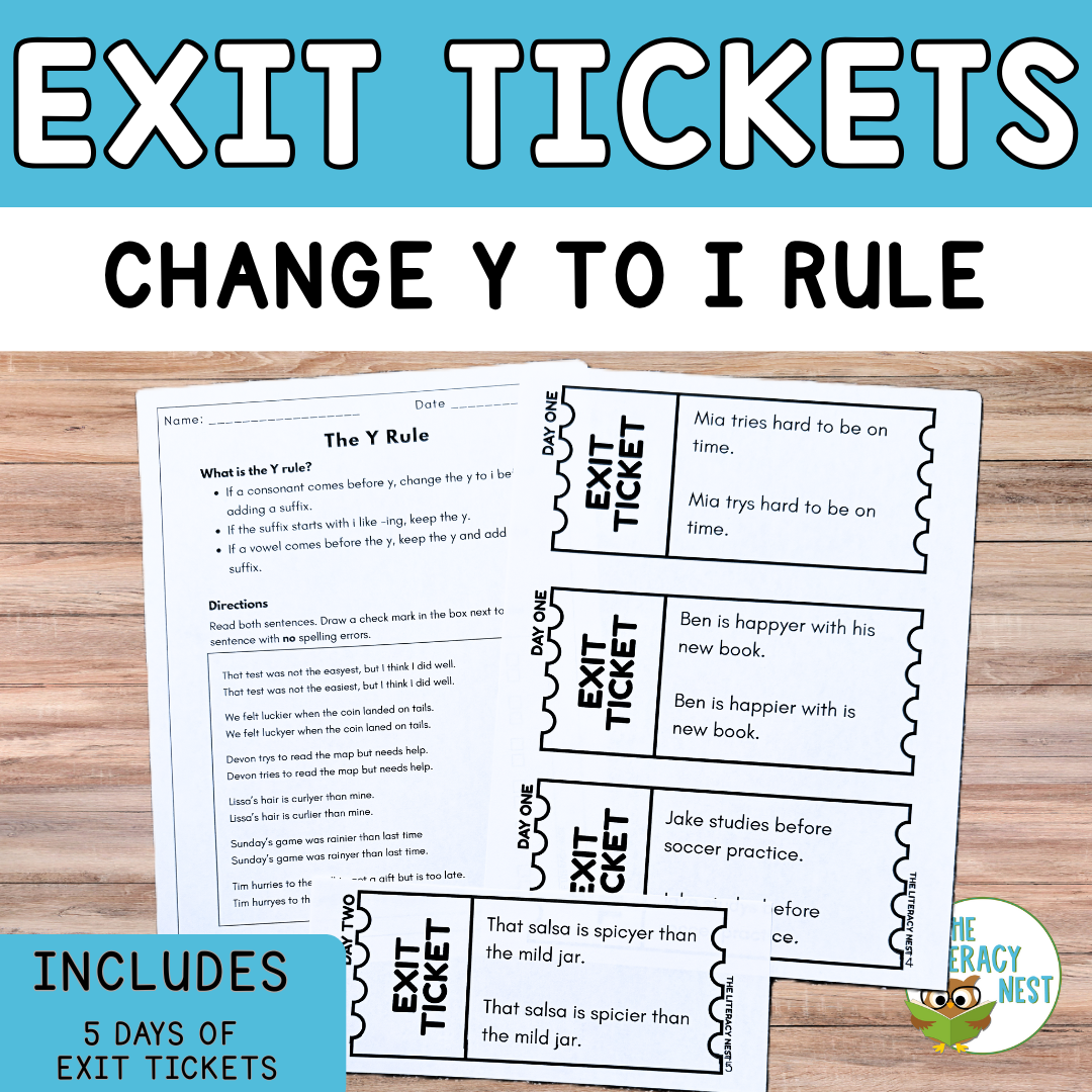 Y to I Rule Exit Tickets & Quick Assessment and Spelling Practice