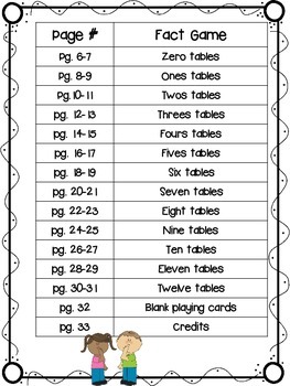 *There is a set of cards for each set of times tables for multiplication facts 0-12.