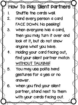 I’ve included instructions for playing Silent Partners and a mini-poster with the game title to display for each skill. Please review the instructions with your class first.